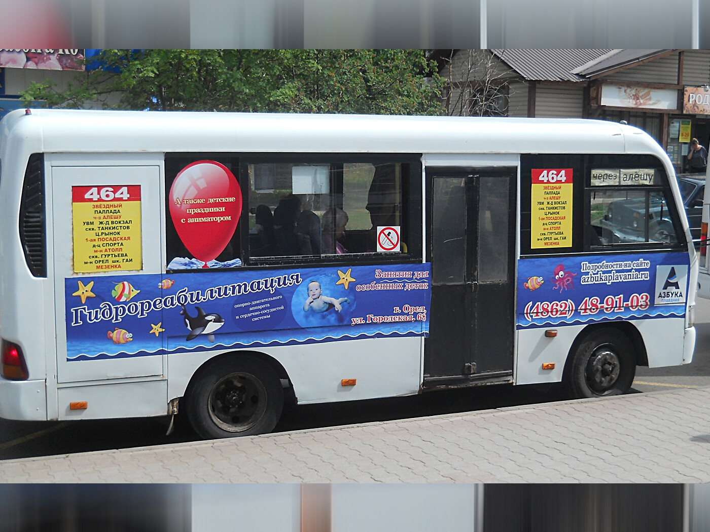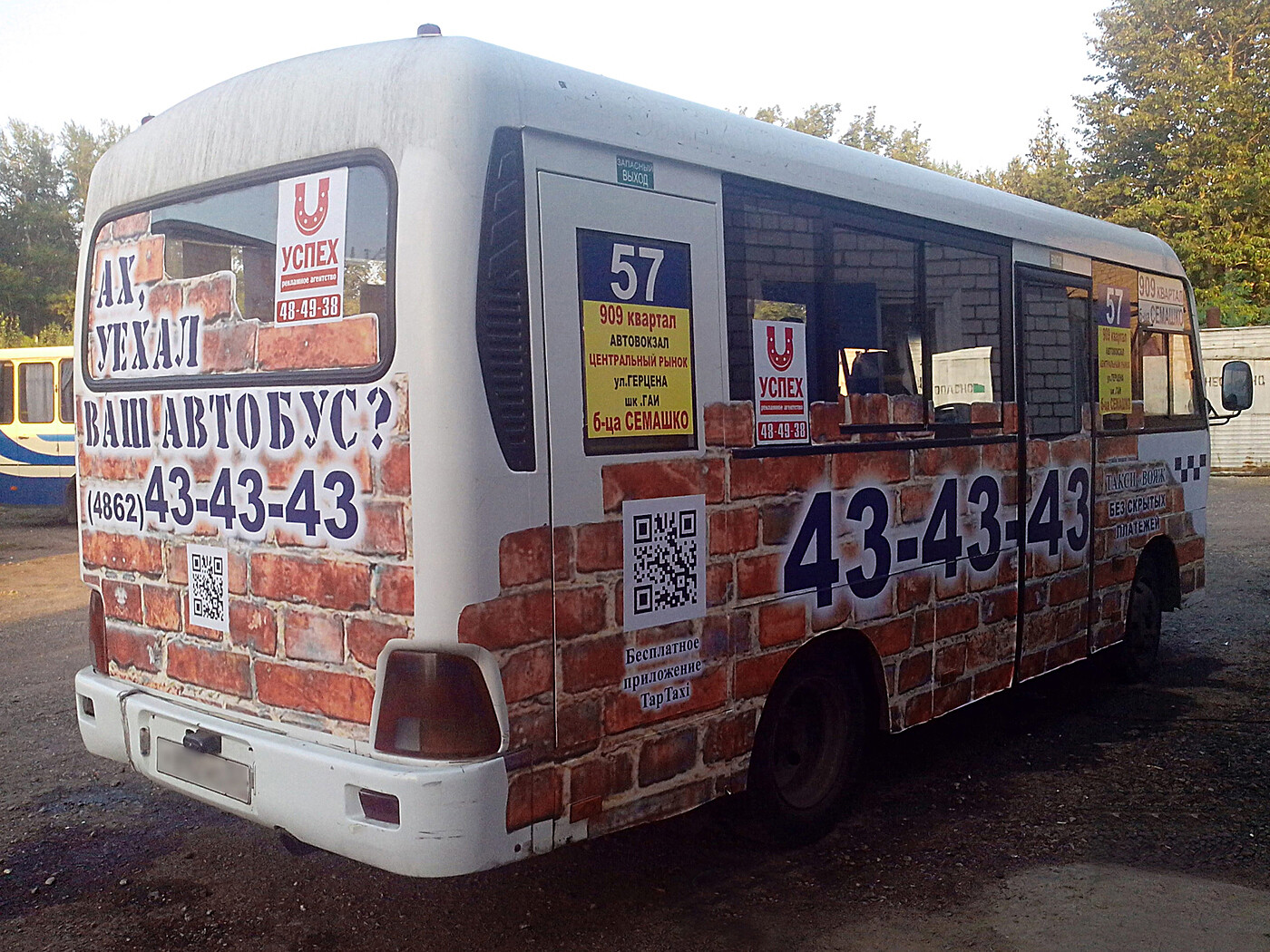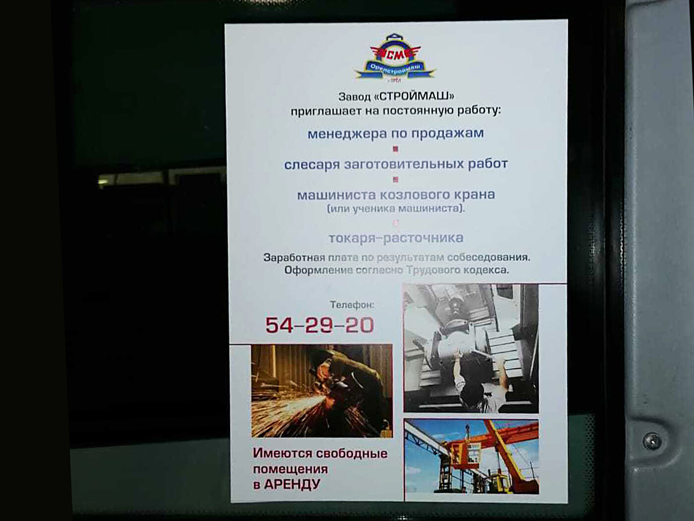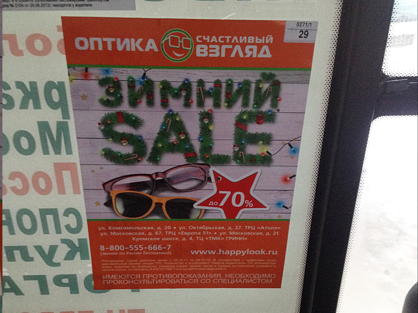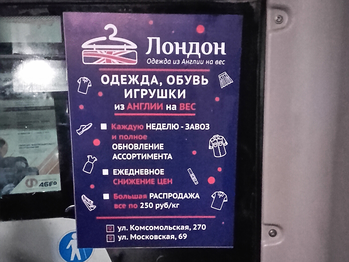 Реклама размещается на окнах, в салоне маршруток, трамваев, троллейбусов, изображением внутрь. Минимальный срок размещения 1 месяц. Минимальный объем размещения - 50 стикеров (листовок)