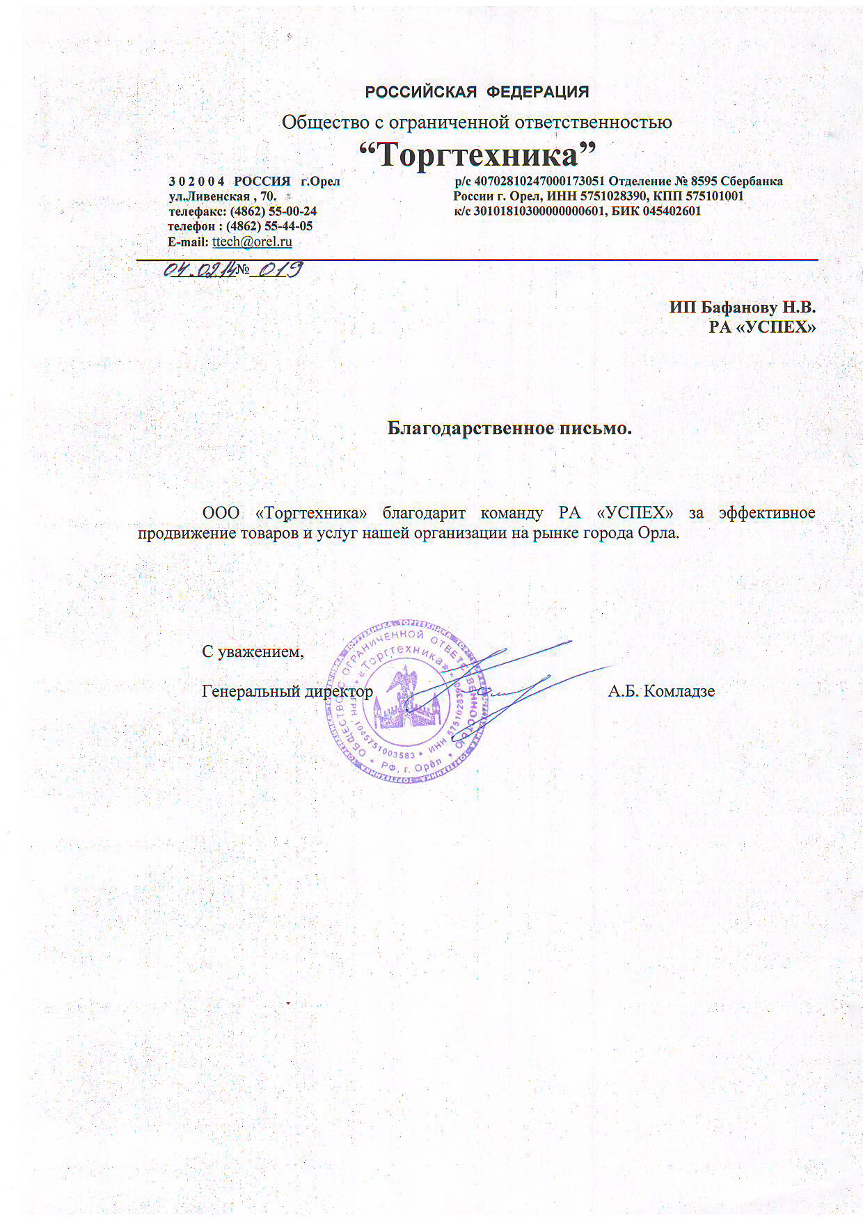 Желаем агентству успехов и дальнейшего процветания! А я, в свою очередь, с удовольствием буду рекомендовать агентство Успех“ всем знакомым и партнёрам!».