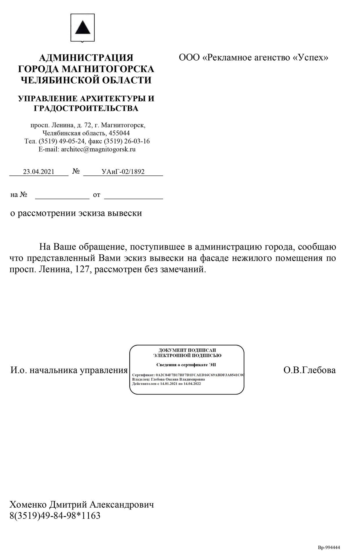 Впервые обратился в РА "Успех" за световой вывеской, отдельное спасибо дизайнеру Екатерине за разработку макета! Очень порадовал тот факт, что стоимость работ оказалась ниже первоначально озвученной суммы. Теперь всегда все заказываем в РА "Успех".