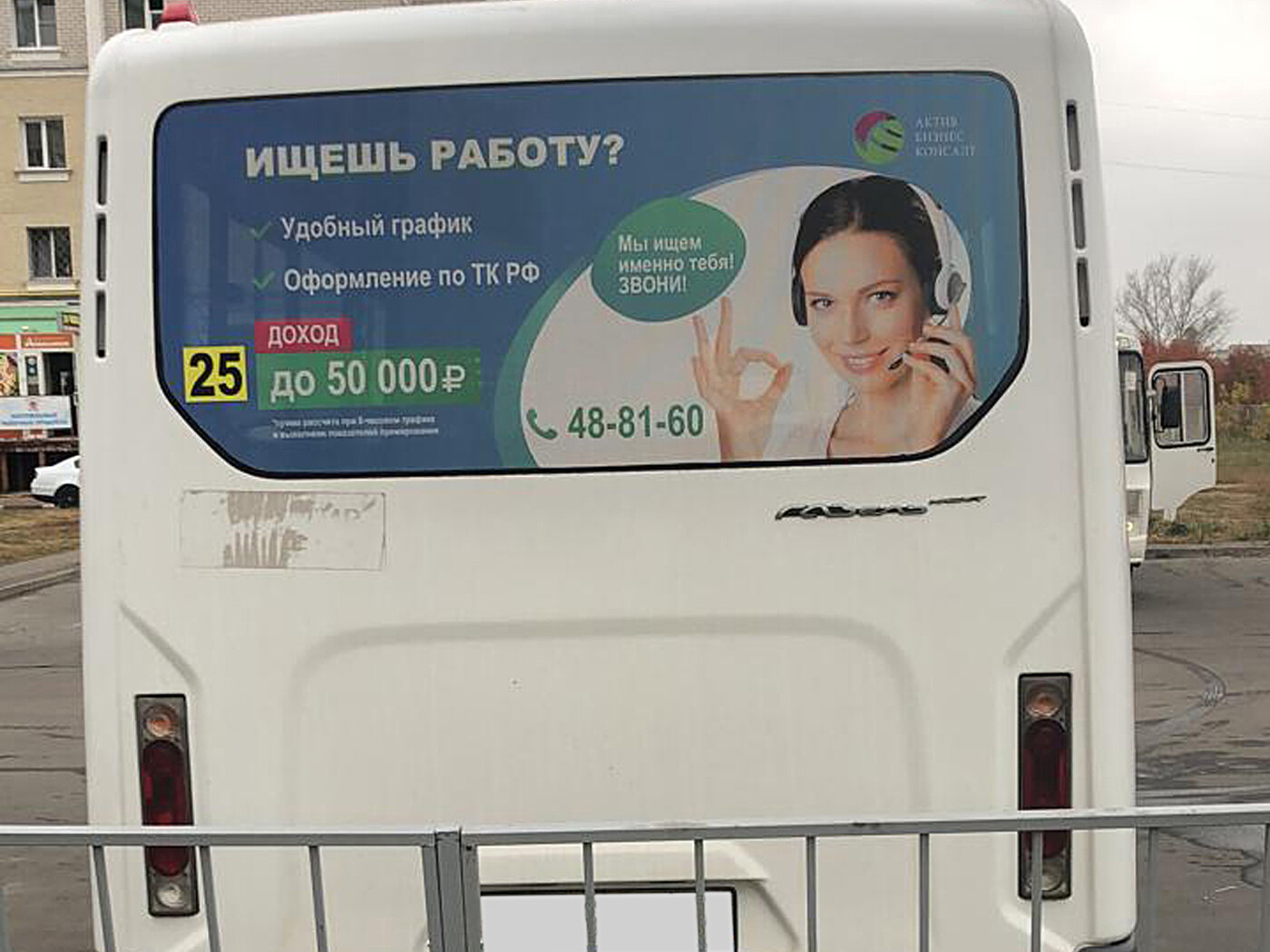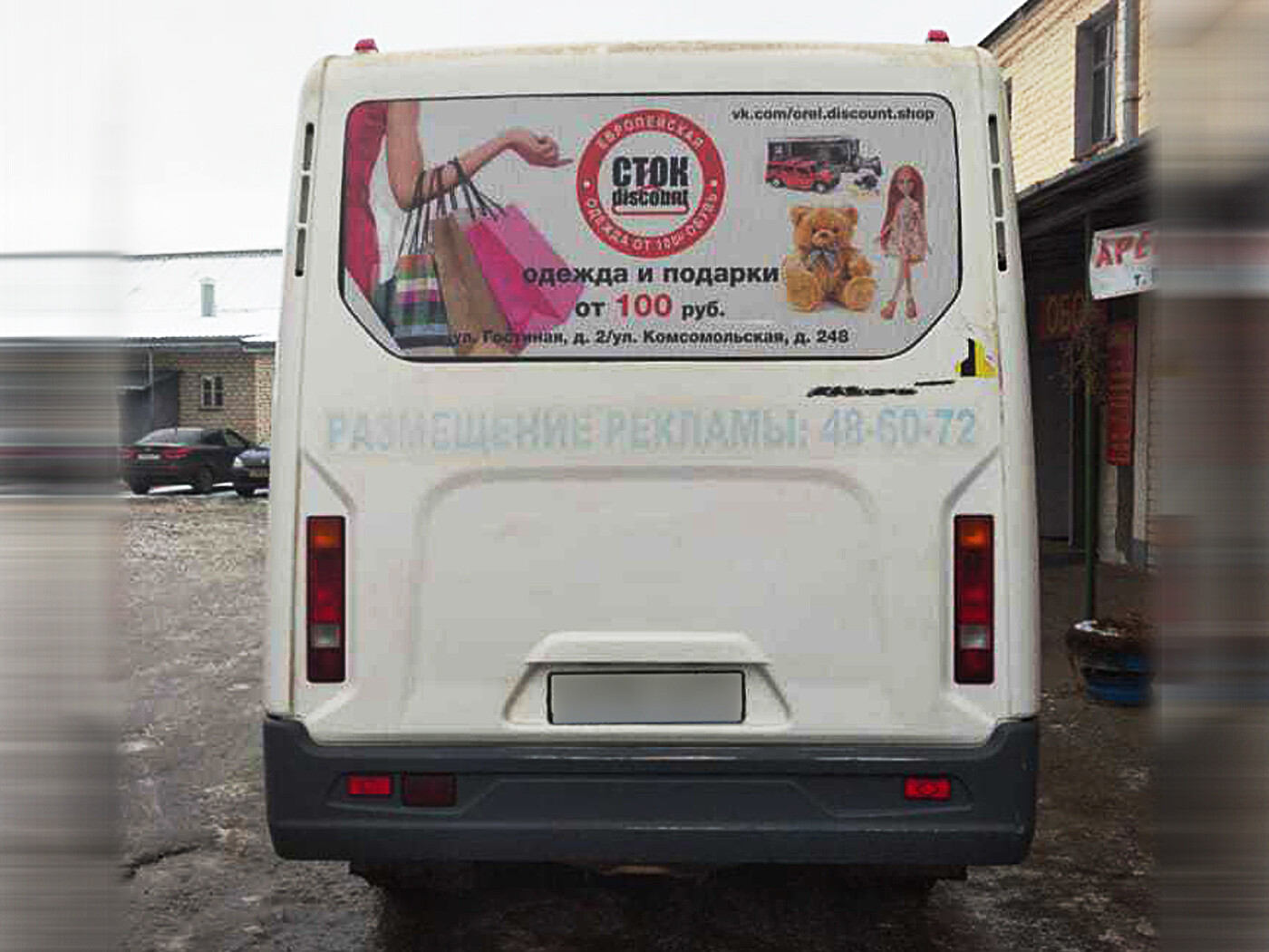 РЕКЛАМА НА ГОРОДСКОМ ТРАНСПОРТЕ (заднее стекло/заднее стекло + задний борт)