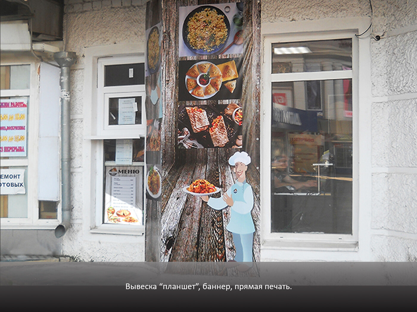Стильный, привлекательный и доступный (от 14 000 руб за кв метр) способ, дополнительно привлечь внимание прохожих.