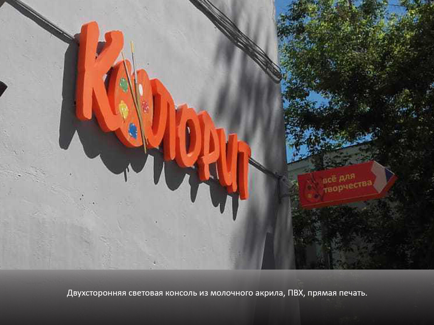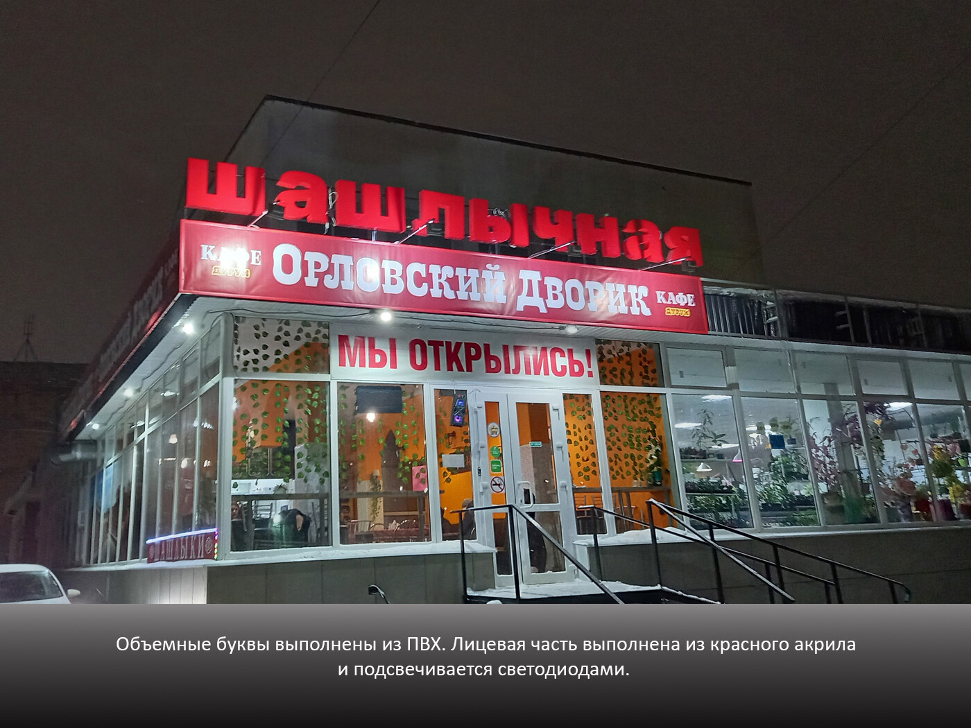 Один из самых ярких и популярных способов исполнения вывески. Безусловно такие вывески притягивают взгляды прохожих и выглядят стильно и привлекательно.