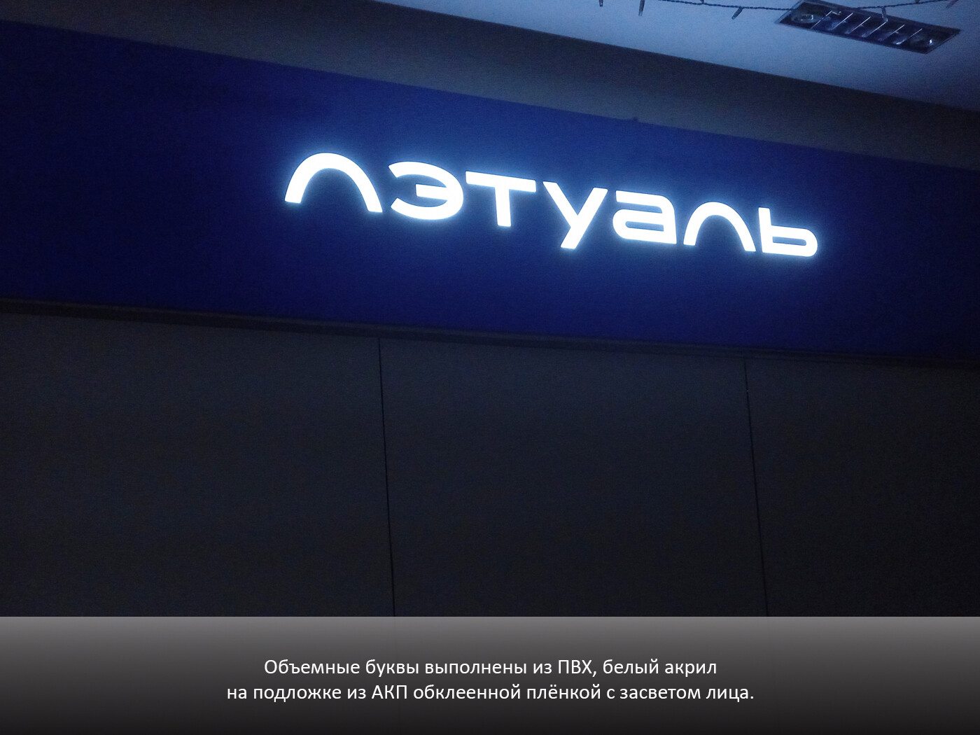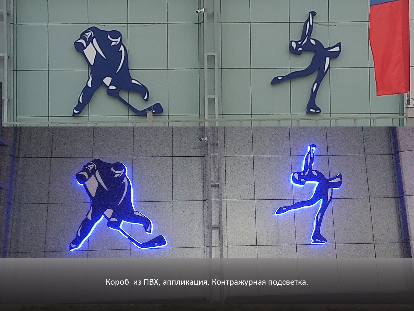 - с контражурной подсветкой (Буквы монтируются на удалении от стены или подложки, на дистанционных держателях. Светодиоды устанавливаются на задней части буквы. Свечение отражается от стены (подложки), подсвечивая букву по контуру)