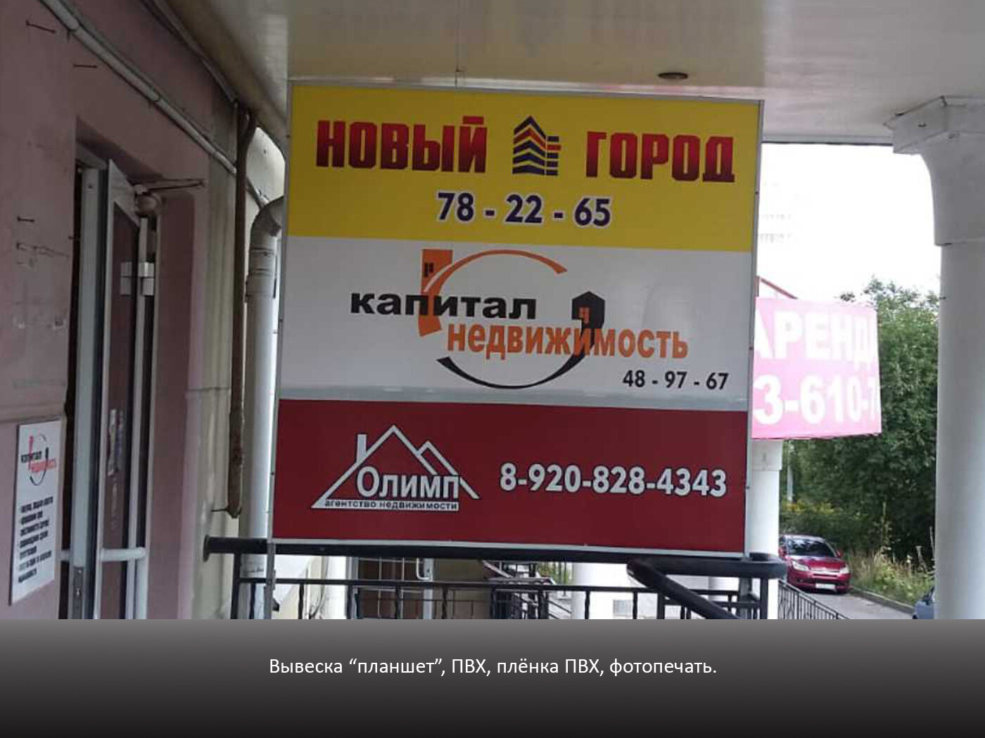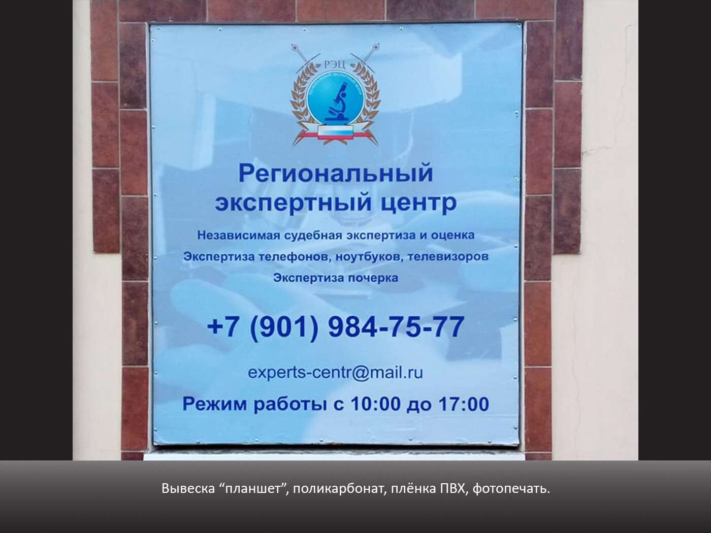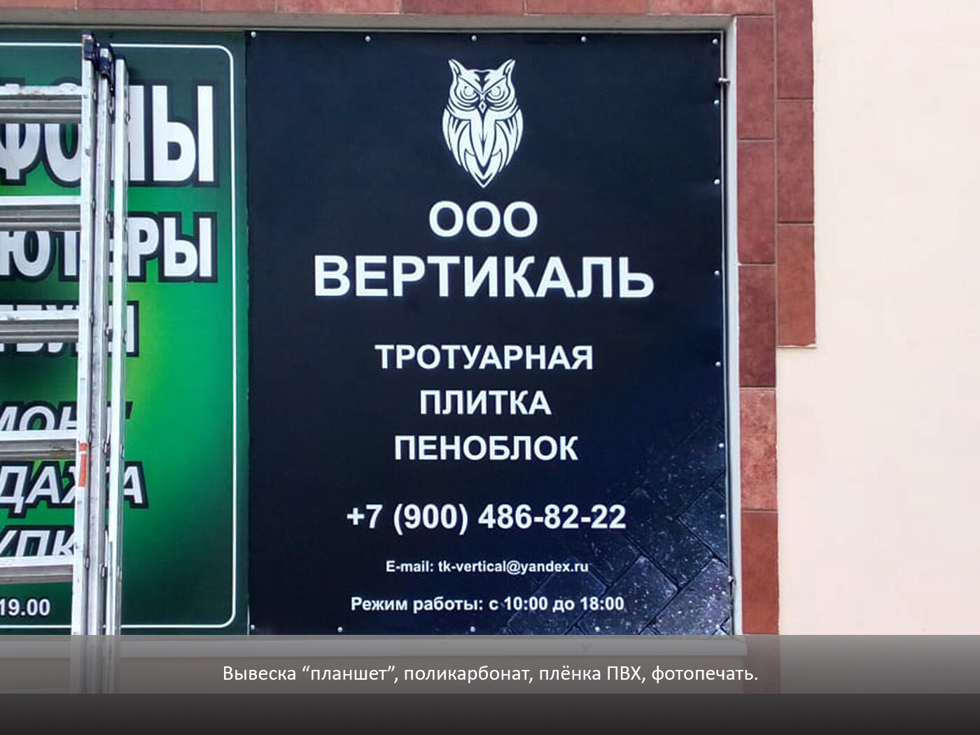 Вывеска планшет может быть на мягкой (баннерной) основе или на жесткой (ПВХ, поликарбонат, композит).