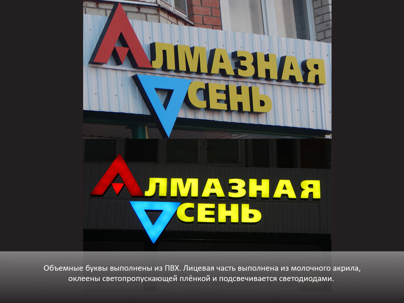 Стоимость буквы зависит от варианта исполнения, размера, сложности шрифта и начинается от 30 руб за см высоты